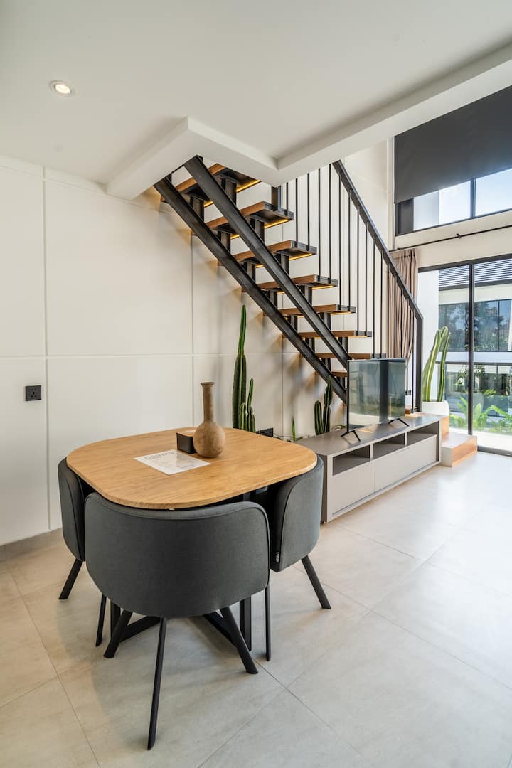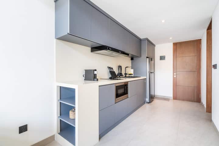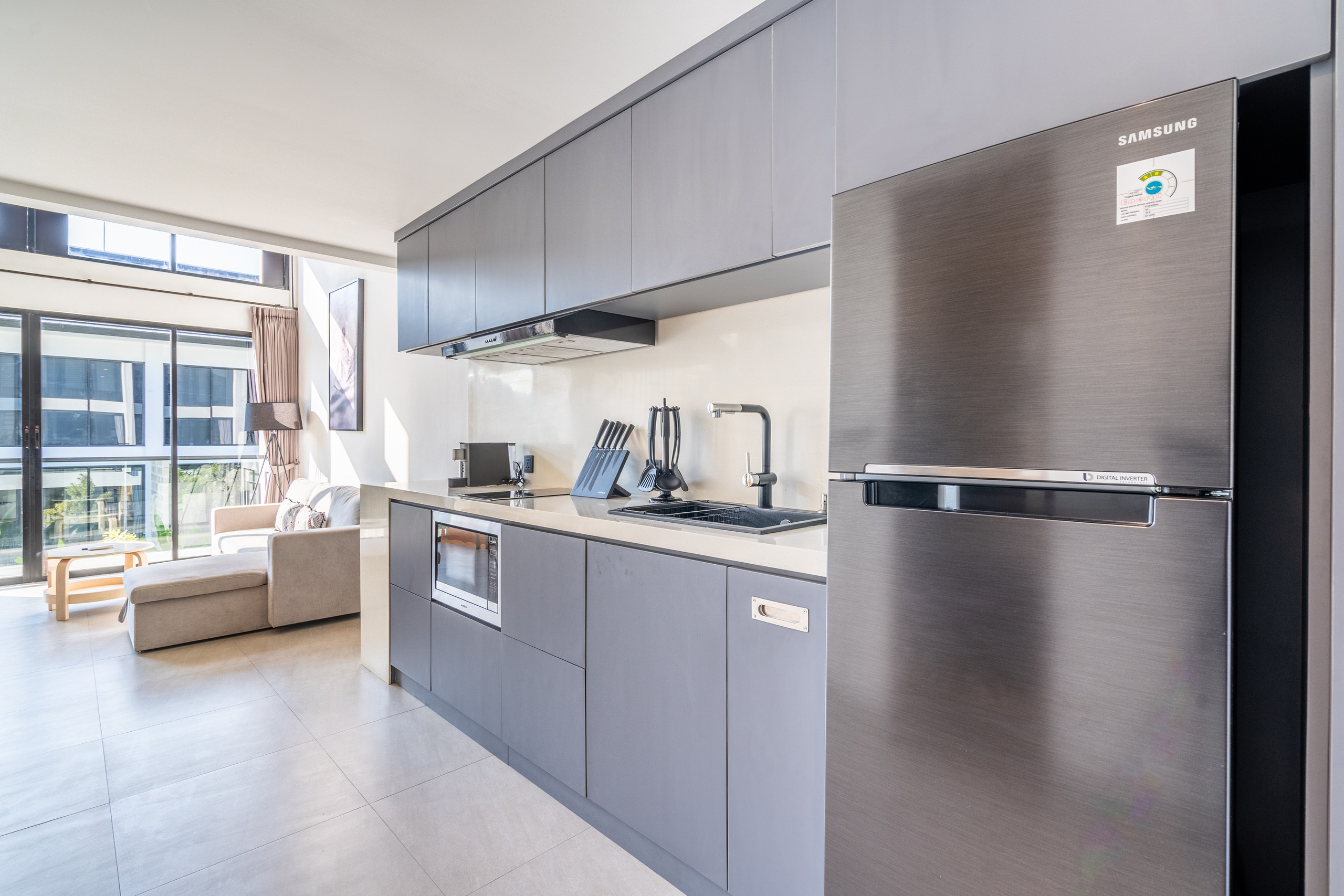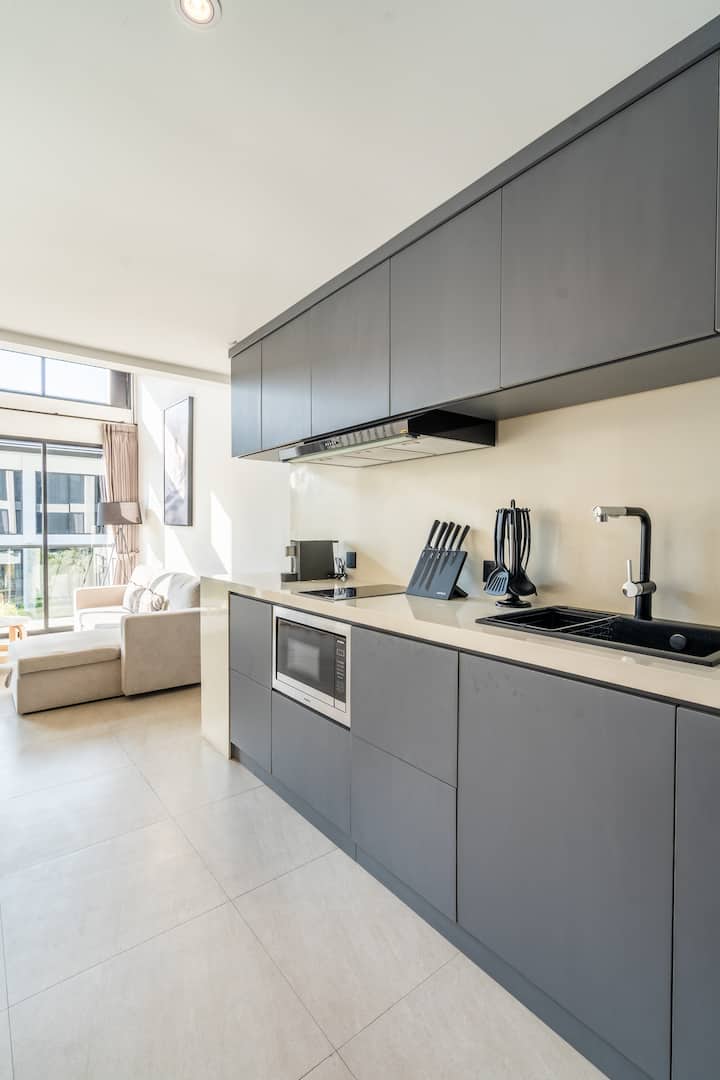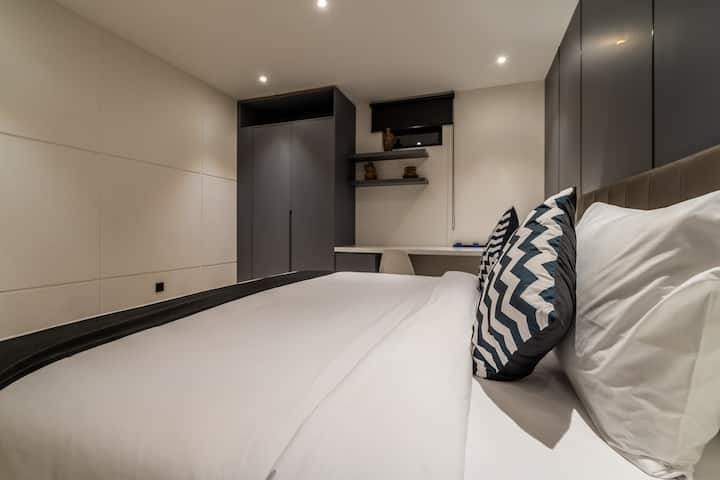 Our modern apartment offers a tranquil escape with all the amenities you need for a relaxing stay. The open-concept living area is tastefully decorated with contemporary