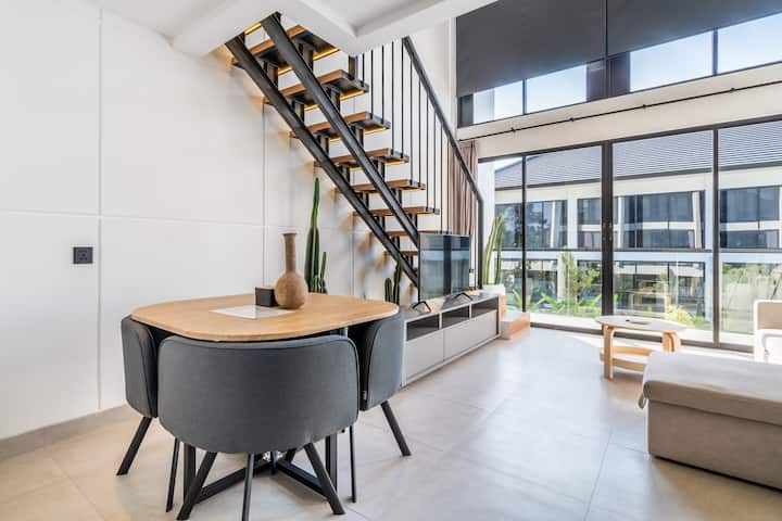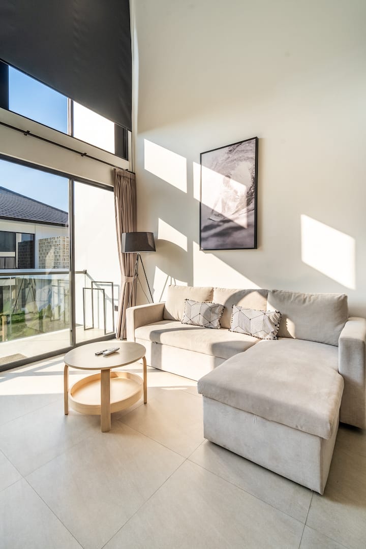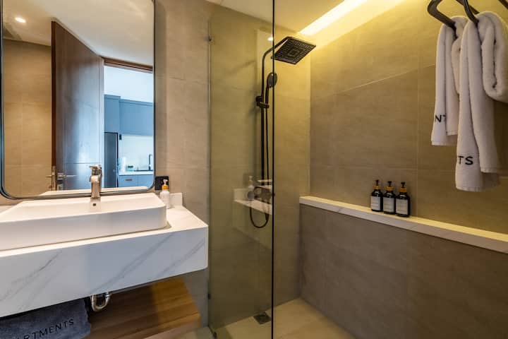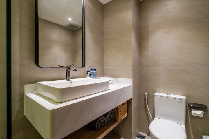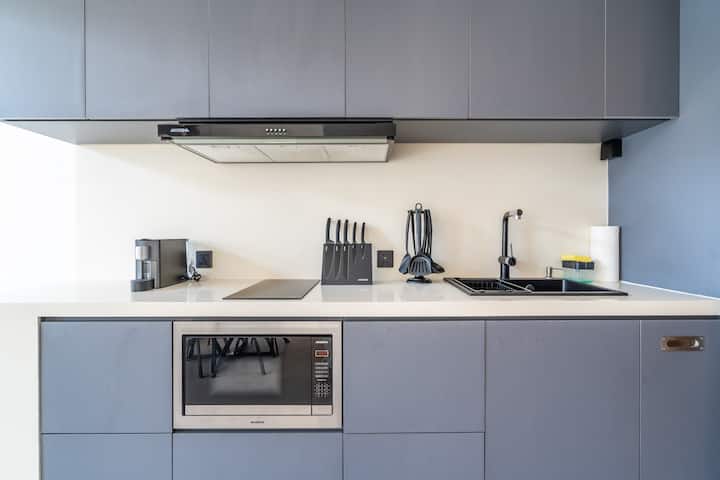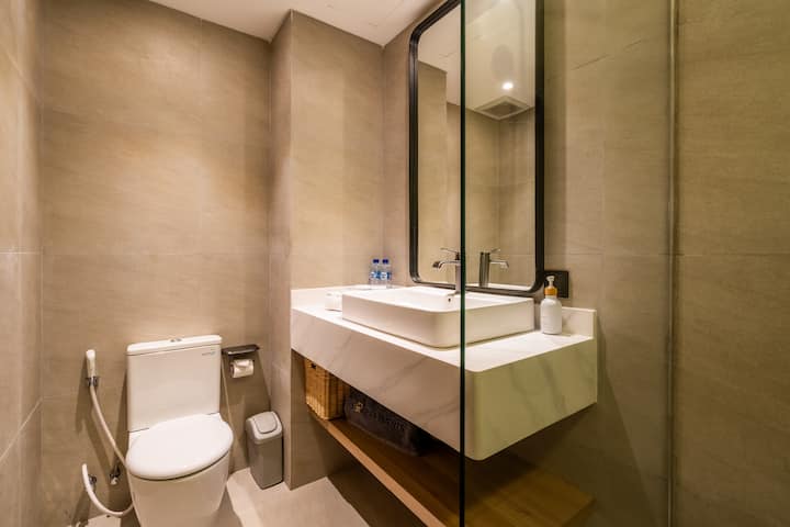 Our modern apartment offers a tranquil escape with all the amenities you need for a relaxing stay. The open-concept living area is tastefully decorated with contemporary furnishings and vibrant touches, creating a warm and inviting atmosphere. Large windows flood the space with natural light, and the private balcony provides a perfect spot for morning coffee or evening relaxation.